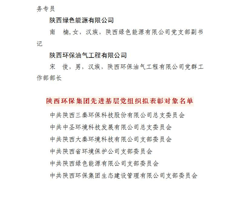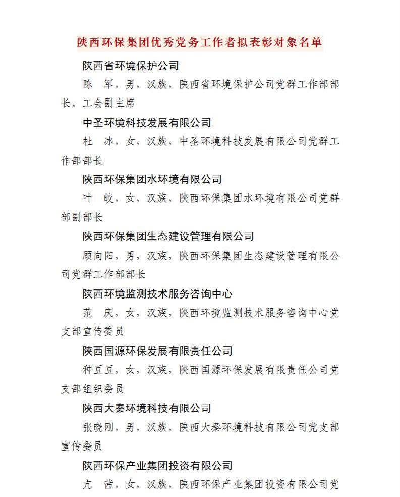 陜西環(huán)保集團(tuán)關(guān)于“兩優(yōu)一先”擬表彰對(duì)象的公示